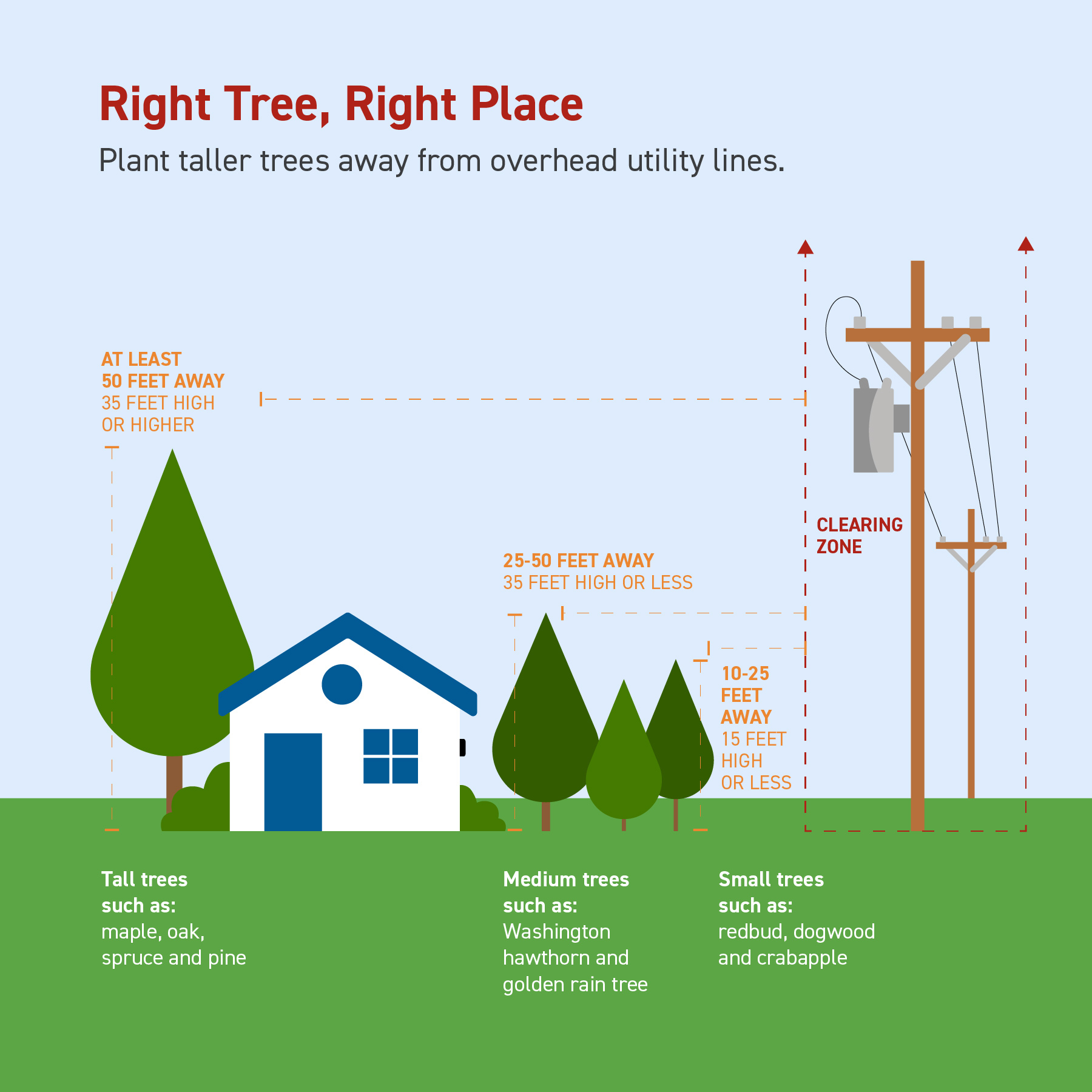Planificar el árbol correcto y la ubicación correcta antes de plantar garantizará que generaciones disfruten de su belleza sin afectar la confiabilidad del servicio eléctrico para su hogar y sus vecinos.